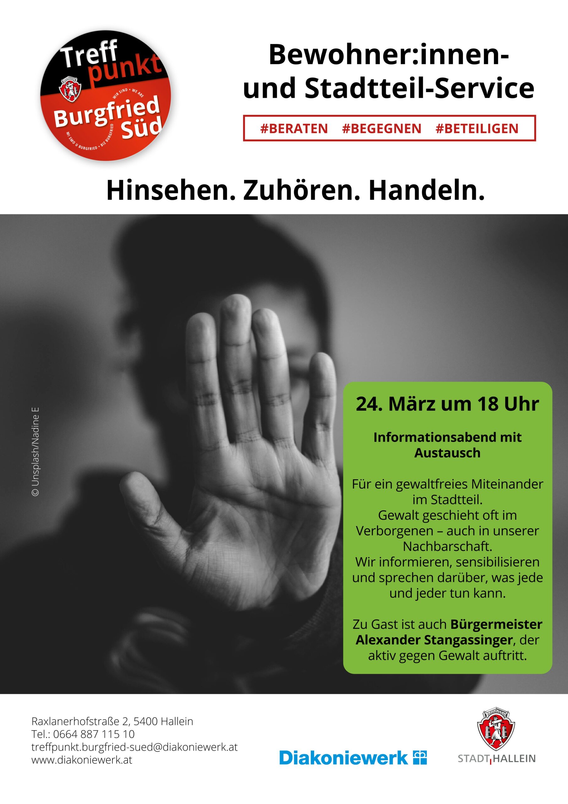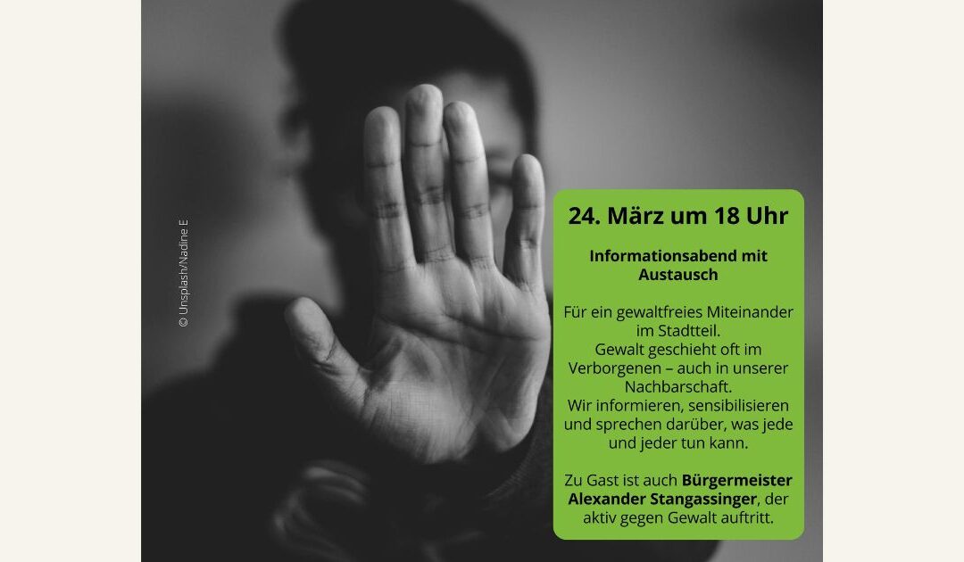 Am Dienstag, 24. März 2026, lädt das Bewohner:innen- und Stadtteilservice Treffpunkt Burgfried Süd um 18 Uhr zu einem Vortrag im Rahmen des Jahresschwerpunkts „Gewalt“ ein.